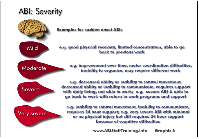 Common categories for severity of ABI (with examples of sudden onset ABIs are):