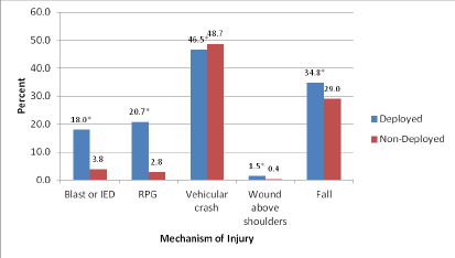 Note* = significantly different from non‐deployed group, injury events are not mutually exclusive
