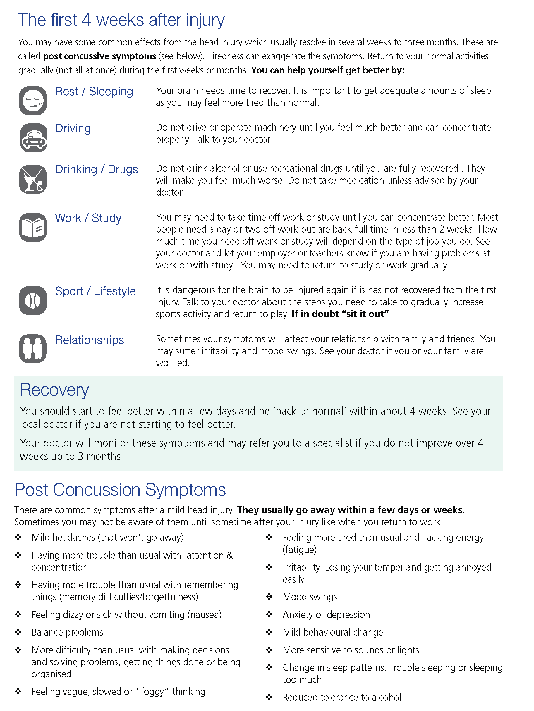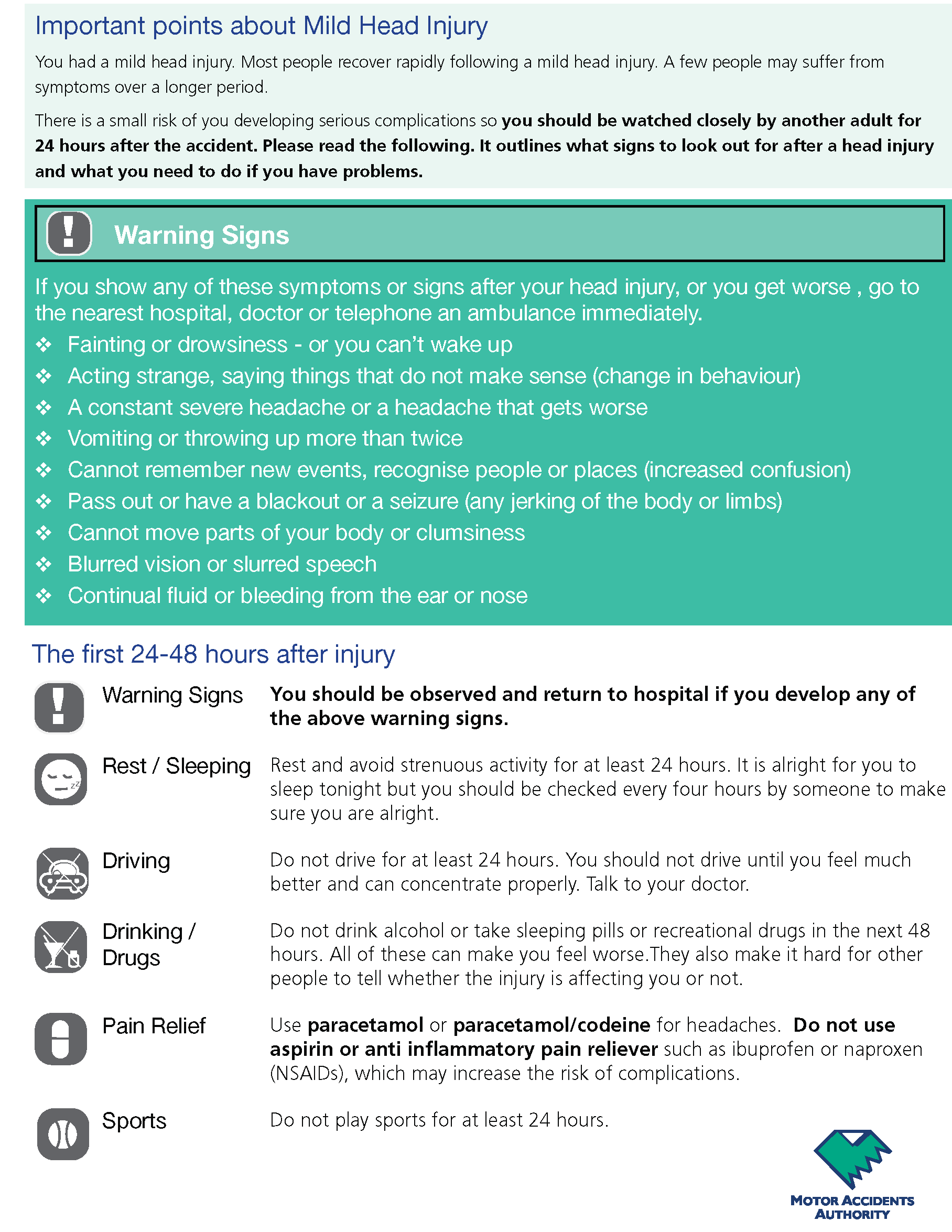 Mild brain injury Hospital Discharge Advice